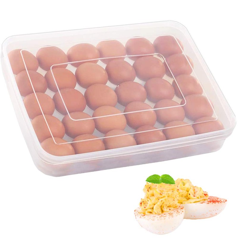 The covered egg holder insures that 30 eggs can be stored in it,keep eggs and deviled eggs fresh and organized without damage or break.