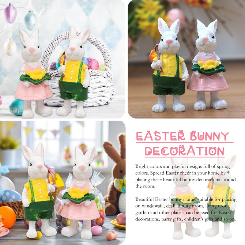 - These exquisite spring bunny statues are ideal for windowsills, desks, restaurants, living rooms, gardens, etc. They are suitable for spring festival decorations, party gifts, birthday gifts and more.