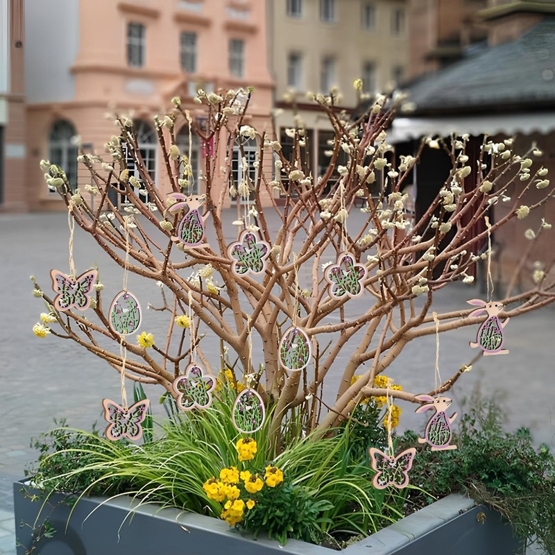 - Easter jewellery for hanging: 12 wooden pendants consists of 3 wooden rabbits, 3 wooden eggs, 3 wooden flowers and 3 wooden butterflies. Each with string for hanging, easy to hang.