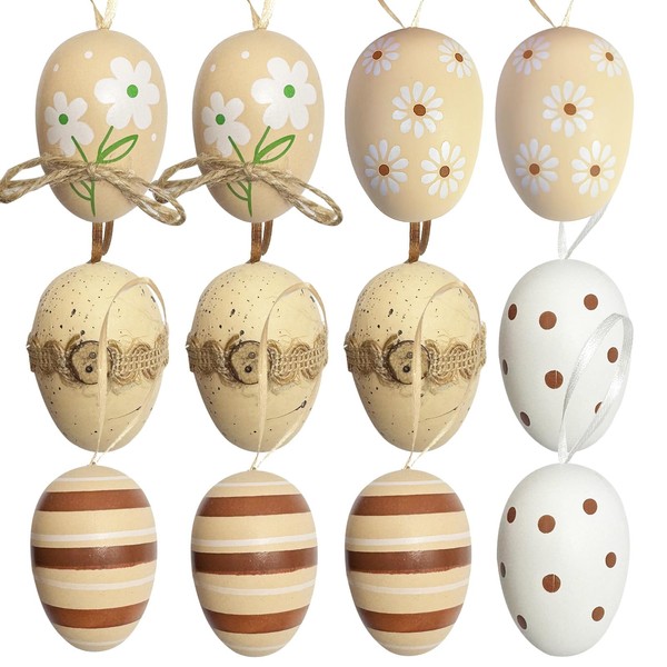 Easter Eggs Decorations, Onlvmyur 12 Pieces Easter Eggs for Hanging Painted Plastic Eggs 6 cm Easter Decorations for School Home Office Parties