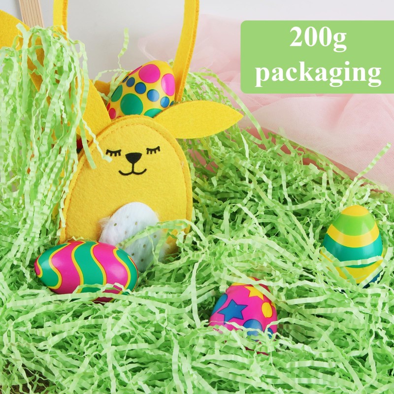 - Weight: our Easter grass decoration weighs about 200 grams and can be used for filling Easter eggs, Easter baskets, Easter gift boxes, for crafting Easter nests etc. Note: 100 g shredded tissue paper filling material can hold a box with the dimensions approx. 35 x 25 x 10 cm fill (only for reference).
