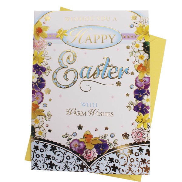 Easter Greeting Card with Yellow Envelope - Happy Easter Floral Design