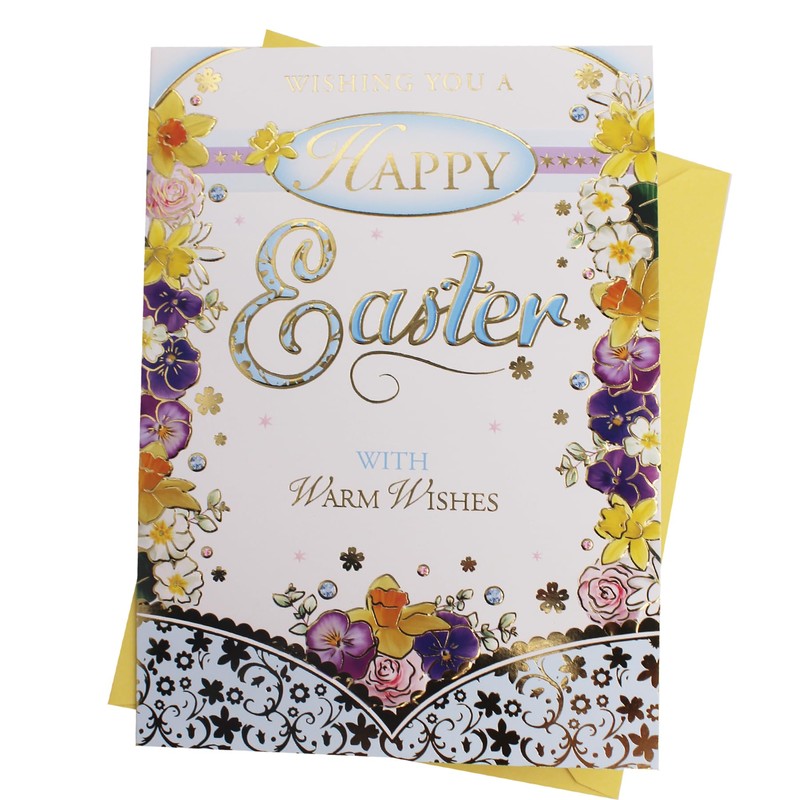 Celebrate the joy of Easter with our exquisite Easter card, designed to convey heartfelt wishes in a beautifully artistic manner. This card features elegant gold detailing that enhances its floral design, creating a visually stunning piece that captures the essence of the celebration. The floral design on this card makes it an ideal choice for sending blessings to loved ones. Measuring 13.5cm x 19.5cm, it provides ample space for your personal message, making it a perfect choice for sharing warm sentiments with loved ones. Accompanied by a cheerful yellow envelope, this card not only stands out in any mailbox but also adds a touch of brightness to the springtime occasion, ensuring that your greetings are both memorable and cherished.