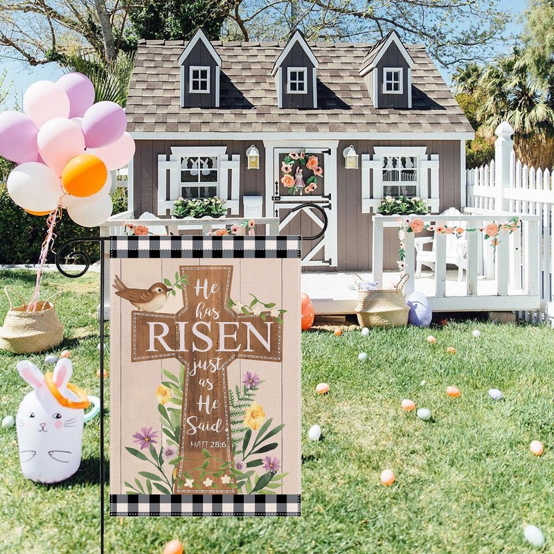 - 【He is Risen Garden Flag】Our spring yard flag is the standard small size and approximately 12 x 18 inches, easy to install and uninstall, it has an approximately 2-inch pocket opening for using with any will fit most standard-sized garden flag stand flagpoles