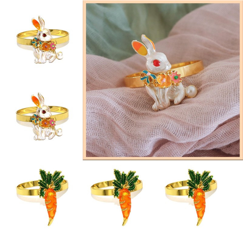 - 【Festive Easter Designs】Charming Easter elements such as vivid rabbit with flower and carrot celebrate this spring traditions. Each piece of these dinner napkin rings features a sophisticated gold finish that complements any tableware