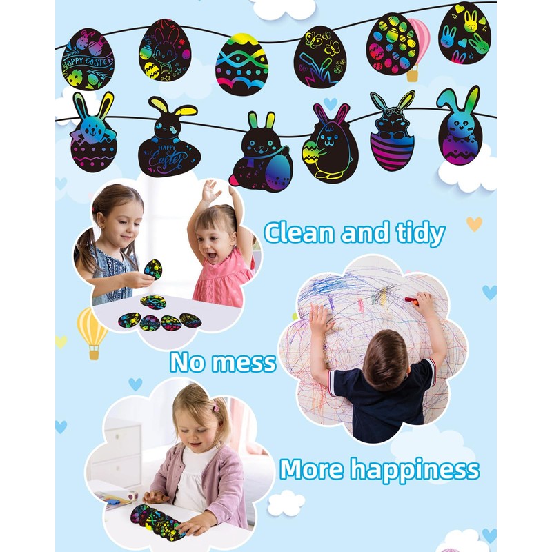 - Effortless Magic Reveal: Simply scratch the black surface with the stylus to uncover vibrant rainbow patterns—no mess, no fuss! A magical experience for easter crafts enthusiasts of all ages