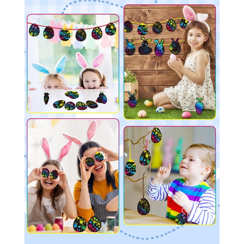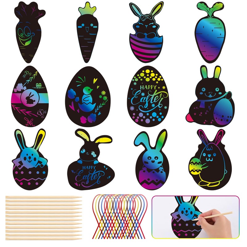 - Complete Easter Craft Kit: Includes 48 scratch art papers, 12 wooden styluses, and 48 colorful ribbons—perfect for group activities. Ideal for easter crafts for kids and adults to unleash creativity together