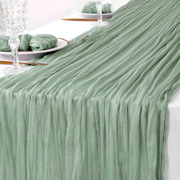 Easter Table Runner Cheesecloth 35x120 Inch 10 FT Rustic Boho Cheese Cloth Table Runner for Birthday Wedding Baby Shower Bridal Shower Sheer Gauze Centerpiece Spring Home Decorations(Sage Green)