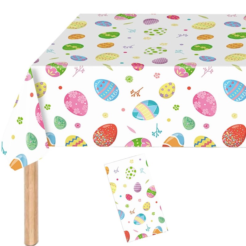 - MULTIMEDIUM EASTER EGG DESIGN The rectangular Easter tablecloth is themed with colorful eggs, and uses various exquisite Easter eggs and floral patterns, symbolizing hope and rebirth. These Easter plastic tablecloths are eye-catching and can add more Easter atmosphere to your family and parties