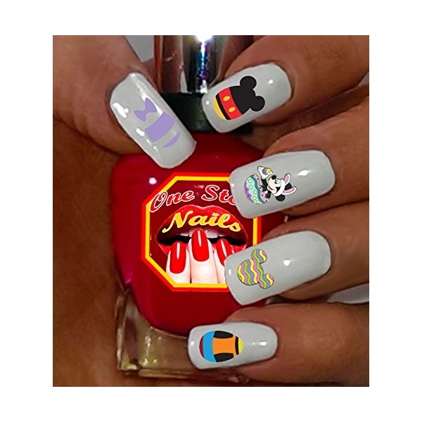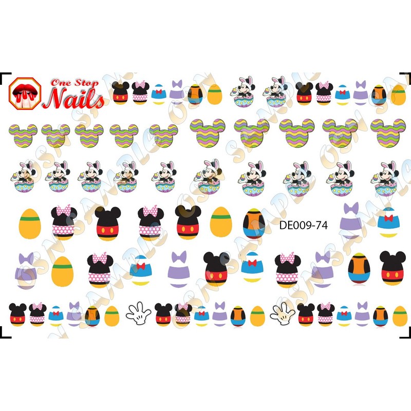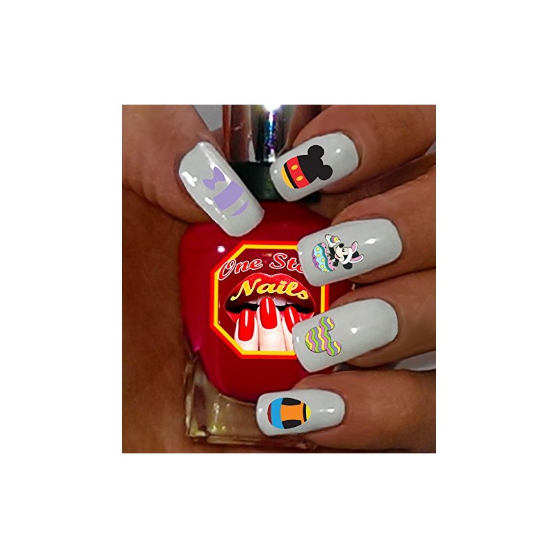 Easter waterslide nail art decals with Mickey Bunny and Easter Eggs. Set of 74 by One Stop Nails.