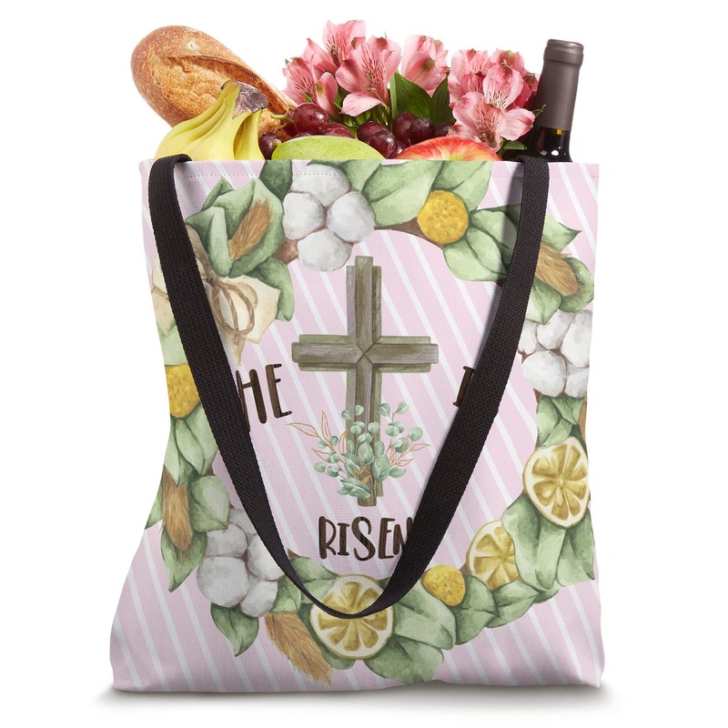 Easter Wreath He Is Risen Citrus Flowers Christian Cross Tote Bag