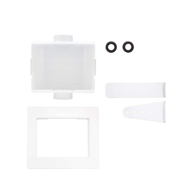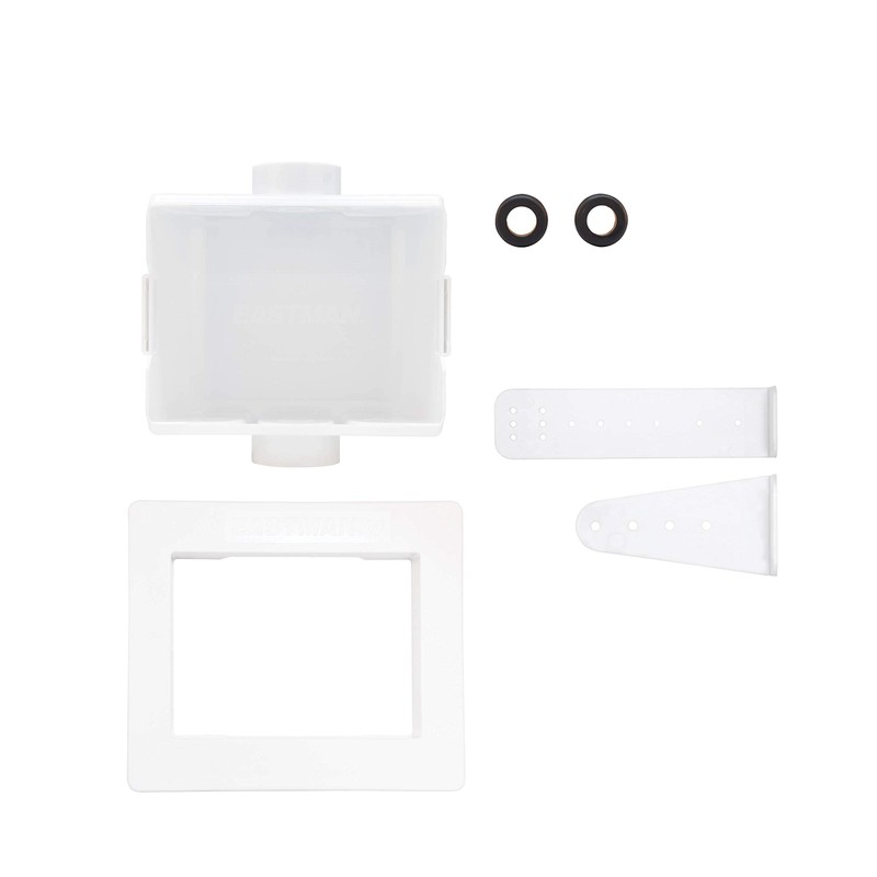 - WASHER MACHINE OUTLET BOX: The Eastman laundry machine outlet box features a one-piece construction which provides recessed protection from potential leaks with a raised drip guard