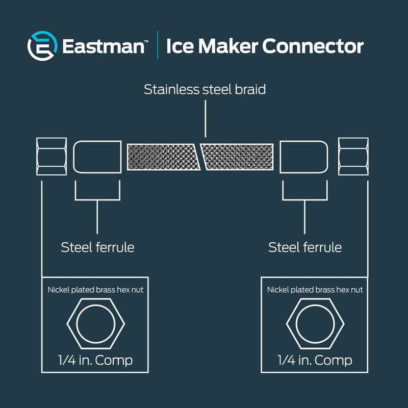 Eastman 48383 Ice Maker Connector, 1/4" X 1/4" Compression X 1' Length