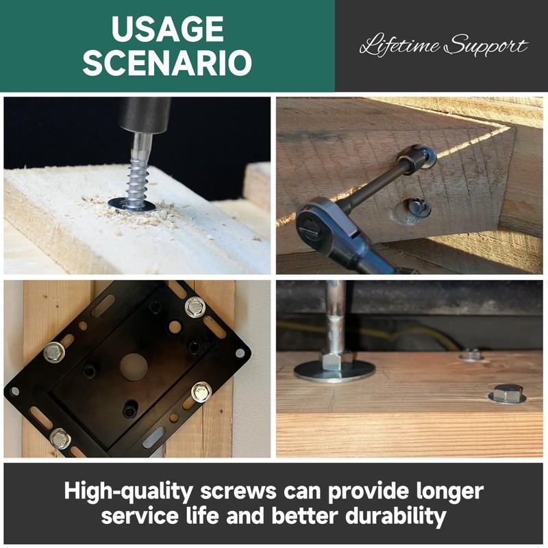 - EXQUISITE CRAFTSMANSHIP - Lag screws feature a diameter of 5/16", a length of 4 inches, and a wrench size of 1/2". The excellent craftsmanship ensures the hex head lag bolts are strong, fast to install, resistant to breakage, highly durable, and maintains its shape without deforming or wobbling. Lag screws for wood, screws and bolts screws and nuts.
