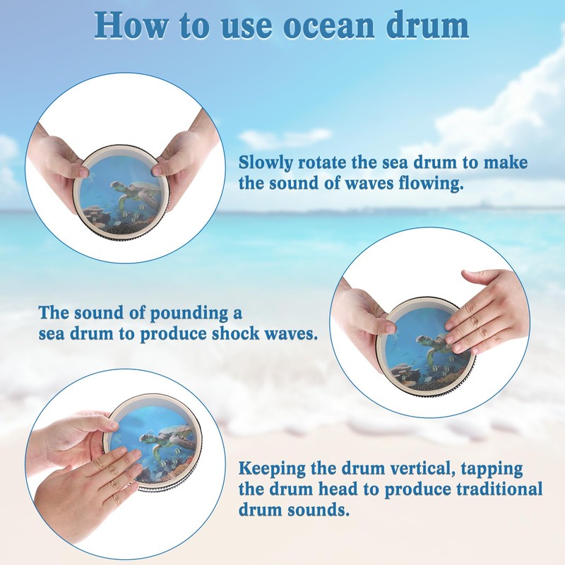 • Easy to use: Shake the sea drum to make a sound, slowly rotate the sea drum to make a sound of waves flowing, and hit the sea drum to produce a sound of shock waves
