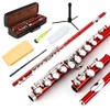 EastRock Closed Hole Flutes C 16 Key for Beginner, Kids, Student -Nickel Flute with Case Stand and Cleaning kit (Red)