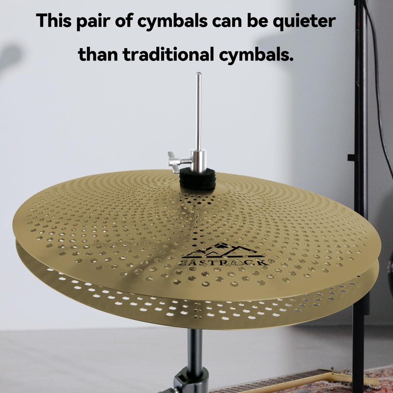 - Lower Volume: These drum cymbals are designed to be 70%-80% quieter than traditional cymbals, making them ideal for practice and performance in noise-sensitive environments. Our low noise cymbals still maintain their metal texture and sound quality, so you can play longer without worrying about ear fatigue or hearing damage