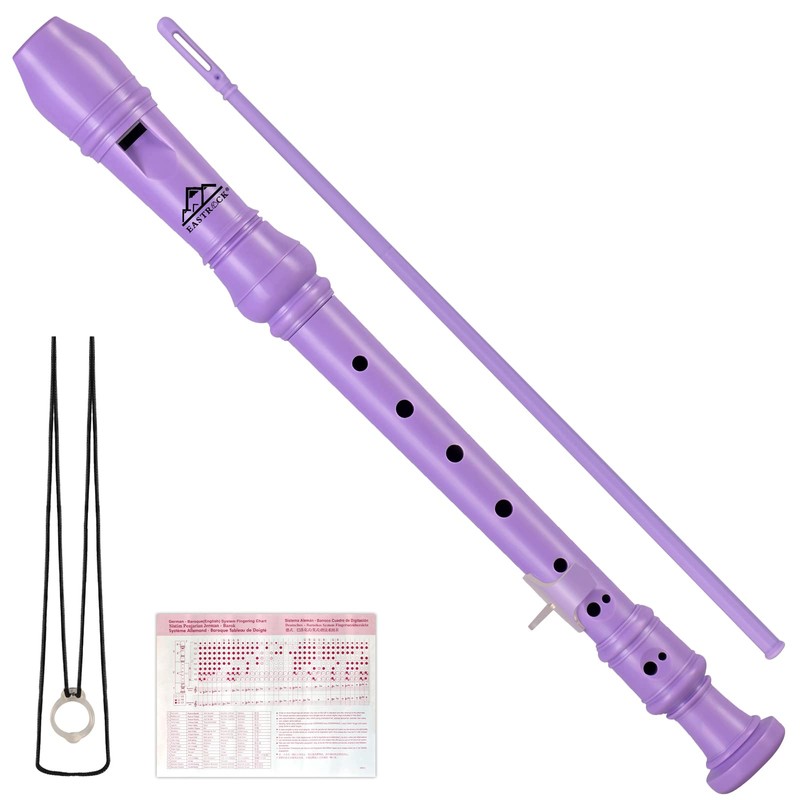 Eastrock Recorder German Soprano Instrument Recorder 3 Pieces for Beginners with Cleaning Rod, Finger Board, Packing Bag, Thumb Rest, Purple