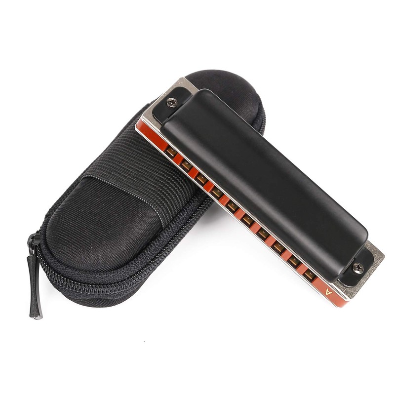 Easttop Harmonica Key of A 10 Hole 20 Tone Diatonic Blues Harmonica A with Case Top Grade for Professional Player,Beginner,Students,Children,Kids Gift(East Top)- Black