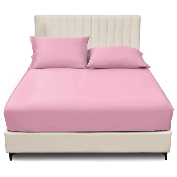 Easy Care 4ft Fitted Sheet Pink - Lightweight Small Double Fitted Sheet - Polycotton Bed Sheets Upto 25cm Deep - Elasticated Corners Bed Sheets & Mattress Sheets (120x190 cm)