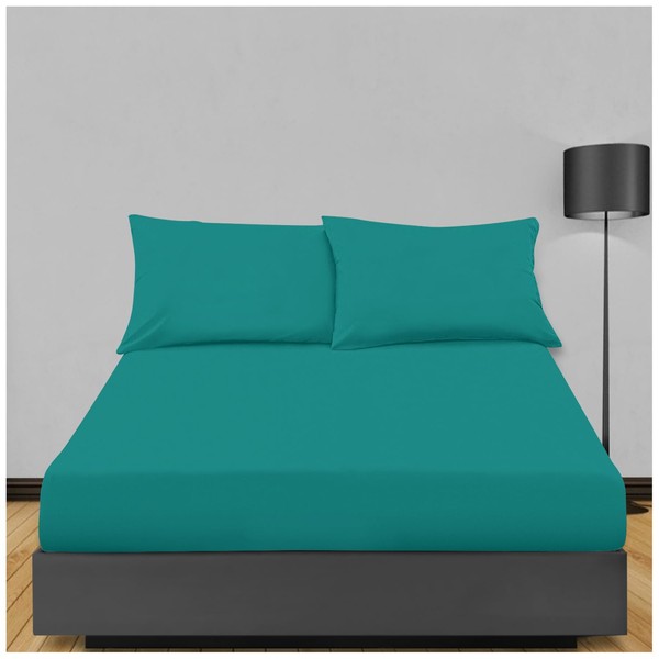 Easy Care Extra Deep Double Fitted Sheet | Non Iron & Plain Dyed Ultra Soft Breathable Lightweight Poly Cotton Bed Sheet | Deep Teal