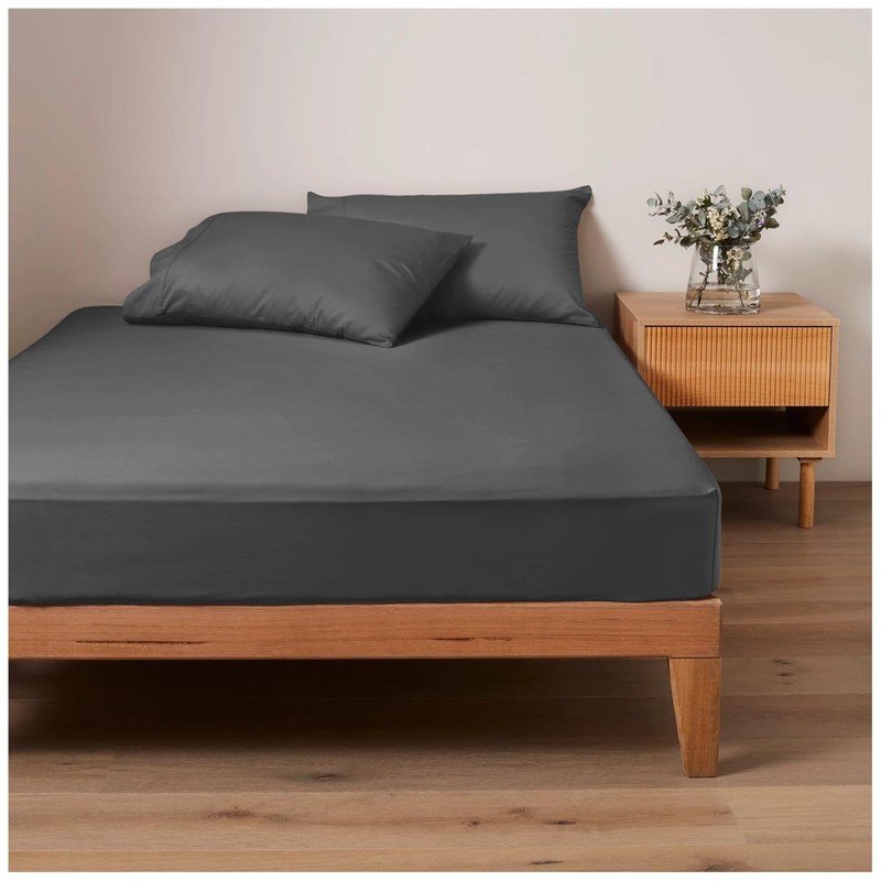 Easy Care Fitted Sheets Double Bed, Super Soft Plain Dyed Bedding Double Bed sheets Fitted, Non Iron Polycotton Double Fitted Bed Sheet, Charcoal
