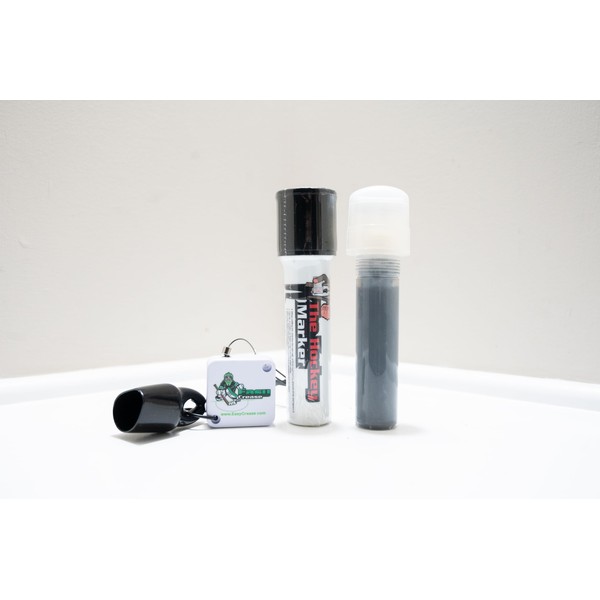- Washable Gray marker is safe on goalie pads. Black marker is permanent ink.