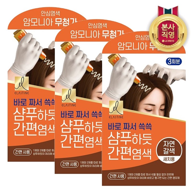 Easy dyeing like elastin shampoo, natural brown 60g x 3 / 엘라스틴 샴푸하듯 간편염색 자연갈색 60g x 3개