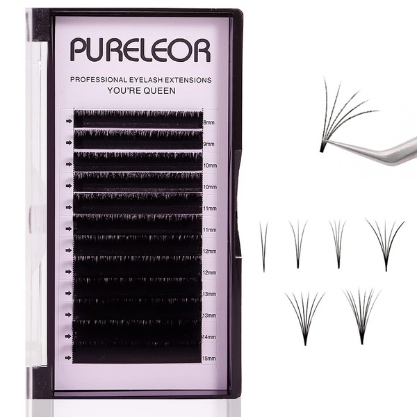 Easy Fan Lashes 0.10 D Curl Single Tray 10mm 2D-20D Volume Eyelash Extensions Easy Fanning Russian Lashes Individual Lash Extension(0.10D-10mm)