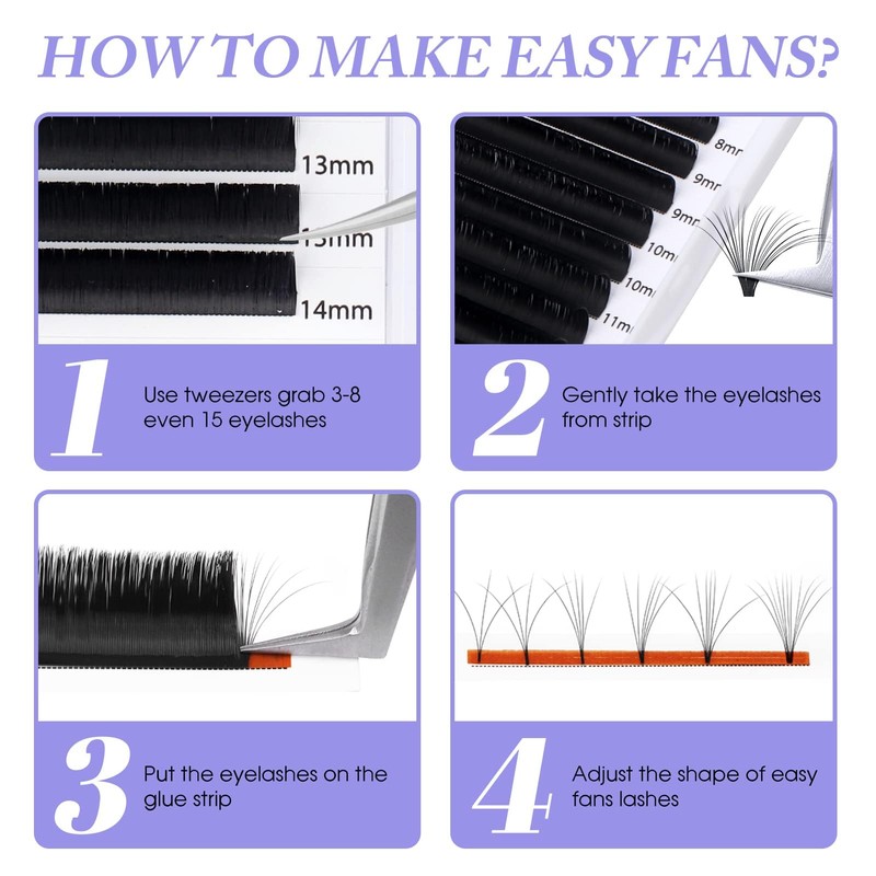 - Easy Fan Lashes: Not premade fans. Using special craft to hold their roots together, fan 3D to 10D easily even as a beginning lash artist.