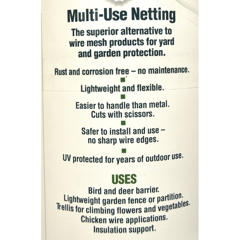 Lightweight and flexible, Easy Gardener Multi-Use Netting can be used for a variety of applications around the yard and garden, including garden fencing to protect plants, fruits and vegetables, animal fence barrier, flower and vegetable trellis support, pool coverings and even light-duty partition fencing. It needs no maintenance, cuts easily with scissors and is UV protected to last for years. Unlike metal products, Multi-Use Netting will not rust or corrode and has no sharp edges to cut your hands during installation making it an ideal alternative to chicken wire. Easy Gardener Multi-Use Netting can be reused year after year making it a very economical netting solution.