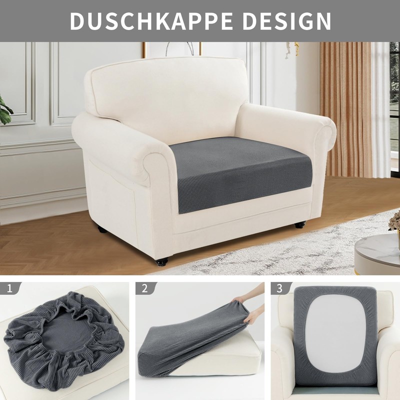 - HIGH QUALITY STRETCH SOFA SEAT CUSHION COVER: Made from 20% spandex and 80% polyester, our sofa covers offer excellent elasticity that allows them to stretch freely and fit most sofa seat cushions perfectly. The thickened fabric is durable, tear or deformation resistant and retains its softness and shape even after repeated washing, making it ideal for long-term use. The soft and breathable couch cover is suitable for all seasons.