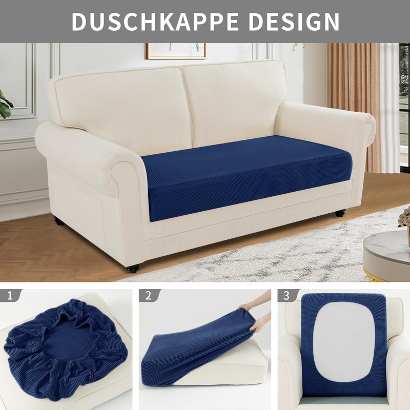 • HIGH QUALITY STRETCH SOFA SEAT CUSHION COVER: Made from 20% spandex and 80% polyester, our sofa covers offer excellent elasticity that allows them to stretch freely and fit most sofa seat cushions perfectly. The thickened fabric is durable, tear or deformation resistant and retains its softness and shape even after repeated washing, making it ideal for long-term use. The soft and breathable couch cover is suitable for all seasons.