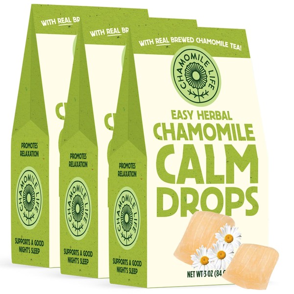 Easy Herbal Chamomile Calm Drops - Low-Calorie Hard Candy with Real Brewed Chamomile Tea - Promotes Relaxation, Support Digestion, Sleep & Immune System - 10 Calories - 3 Pack