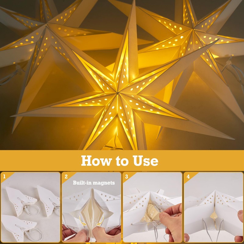 - ⭐Easy To Assemble: This glowing star comes with a suction stone, the flat pieces of paper can be quickly popped up and assembled into a beautiful 3D star.