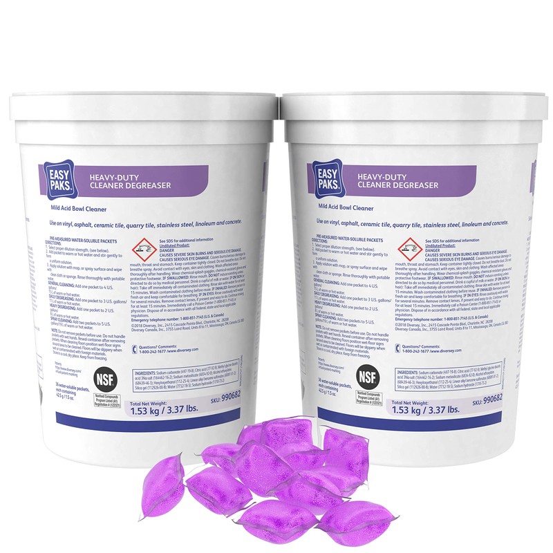 Diversey 990682 Easy Paks Heavy Duty Cleaner & Degreaser, Non-Corrosive Floor & Hard Surface Cleaner 1.5-oz Pods, 36-Paks, 1-Tub (Pack of 2)