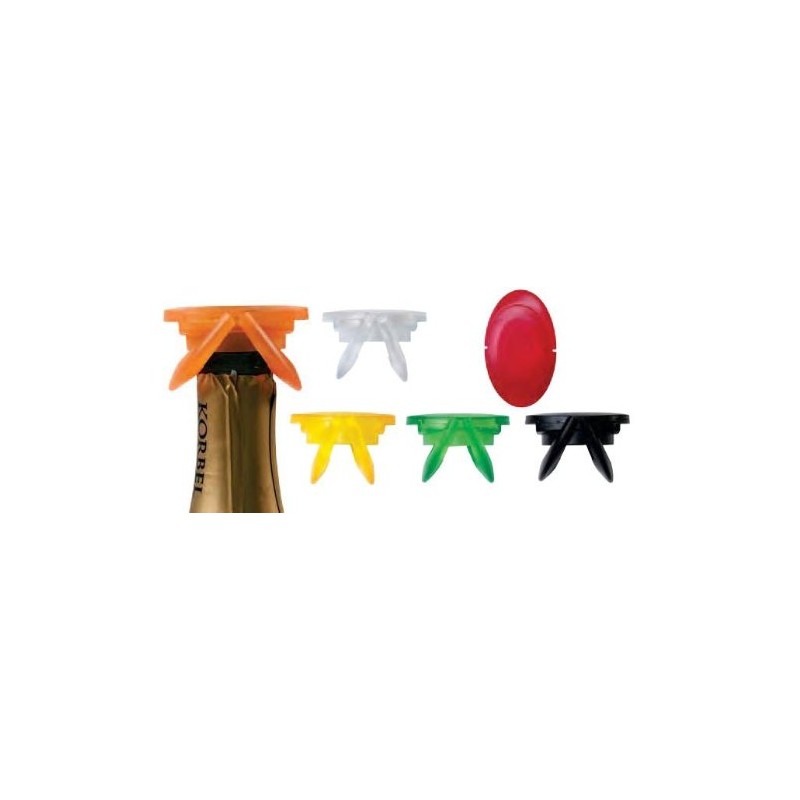 - This stopper has two spring-loaded, fold-up wings that clamp down under the sealing ring of a champagne bottle.