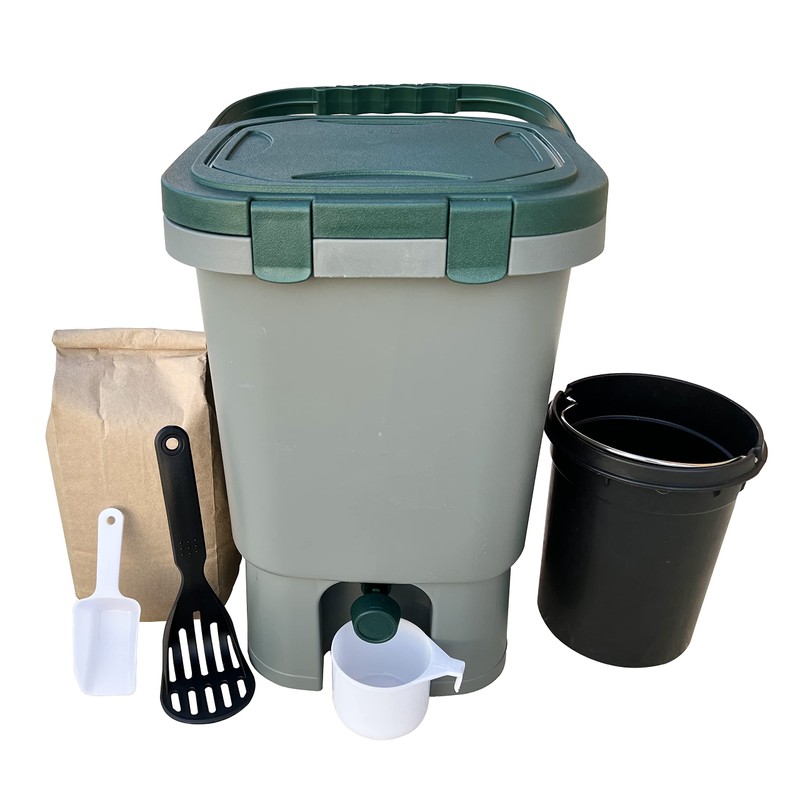 - 5- gallon bucket with a full set of Bokashi compost accessories for easy and clean Bokashi composting. This is unique feature of this model. Other brands or models in the market don’t have this feature.