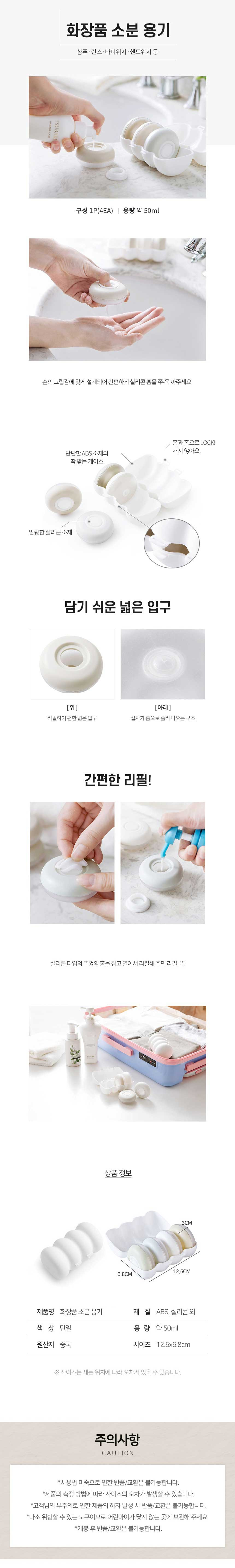 간편 여행 준비물 화장품 바디 크림 원형 소분 케이스 - 본상품선택