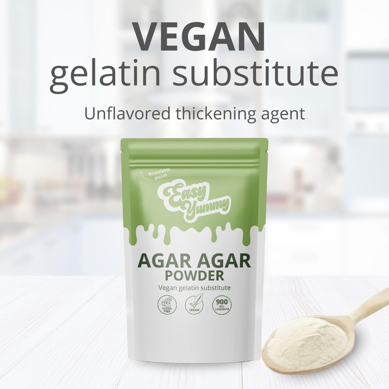 Easy Yummy Agar Agar Powder (100 g), Vegan Gelatin Powder, 100% Halal Vegan Gelatin Powder