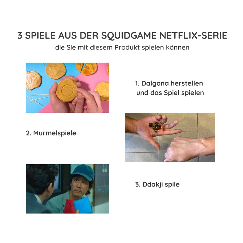 - Korea Game Box contains materials for 3 nostalgic Korean games that appeared in the Netflix series "Squid Game".