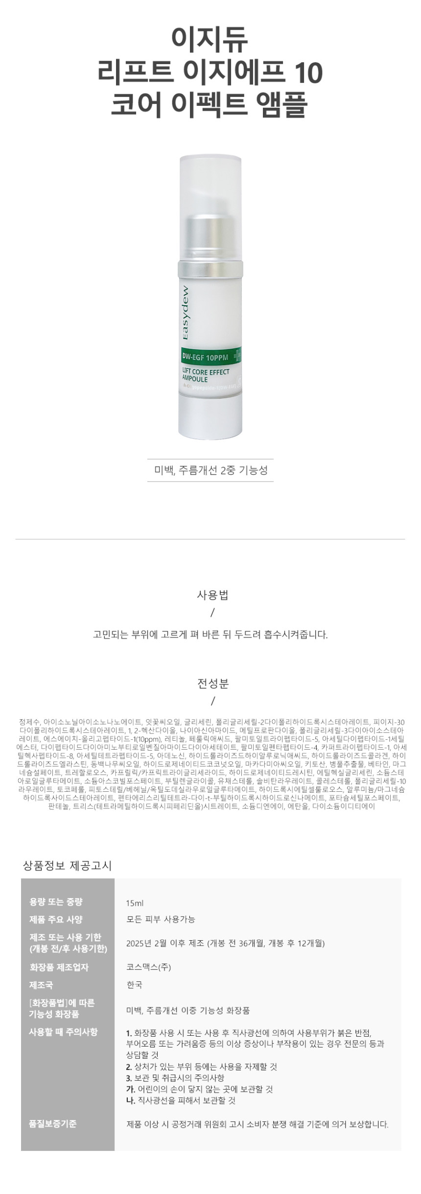 Easydew EGF Lift Core Effect Ampoule 15ml (2 x) / 이지듀 EGF 리프트 코어 이펙트 앰플 15ml 2개