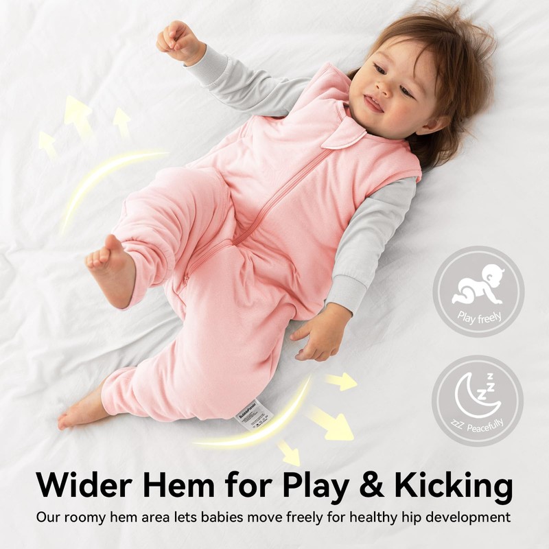 - ROOMY & LONGER WEAR - Toddler Sleep Sack with Feet allows your baby to move around freely, crawl, walk, but still keep warm, and promote healthy hip development. 0.5 TOG rating for the perfect Spring, Summer, Autumn. Reinforced Stitching and high quality fabric for better durability.
