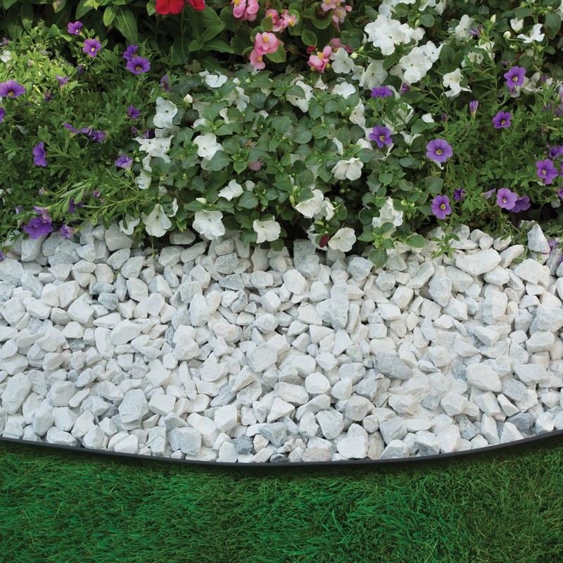 Heavy Duty EasyFlex No-Dig Landscape Edging has a thicker, taller (1.7 inch) wall compared to regular No-Dig Edgings to create a clean line between your landscaping and grass or weeds. The heavy duty recycled plastic is ideal to keep ground cover materials in your garden beds, including river rock, lava rock, pebbles, wood mulch, pine needles, and more. Installing EasyFlex Landscape Edging is as easy as clearing the area of debris and loose dirt, laying the edging along the desired shape and hammering the anchoring spikes (included) through the tab. Easily cut the coil with garden shears or utility scissors to use in multiple garden beds. Use No-Dig Edging with weed fabric to help prevent unwanted weeds and grass in flower beds. The spikes easily pierce through weed fabric and help secure the barrier. Recycled plastic No-Dig Edging is durable, yet flexible enough to give a clean edge to any shape garden or create tight circles around trees. The patented No-Dig L-shaped design eliminates damage from digging into tree and plant roots. Kit includes (1) 100-foot coil of landscape edging and (40) 8 in. spiral spikes. This Heavy Duty No-Dig Landscape Edging kit can complete a 100 linear foot installation.
