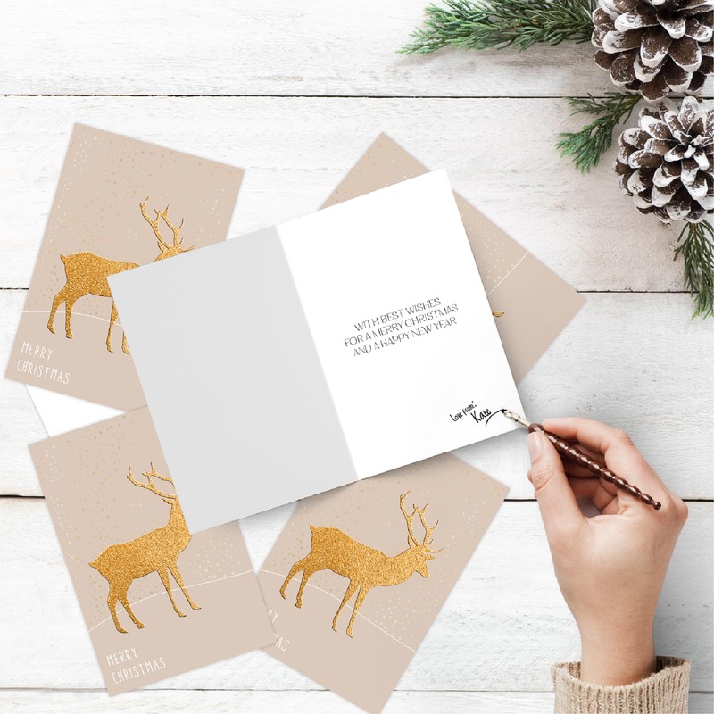 easykart labels Holiday Cards Boxed with Envelopes, Warm Wishes, Gold Reindeer (36-Count) with Envelope & Sealing Stickers