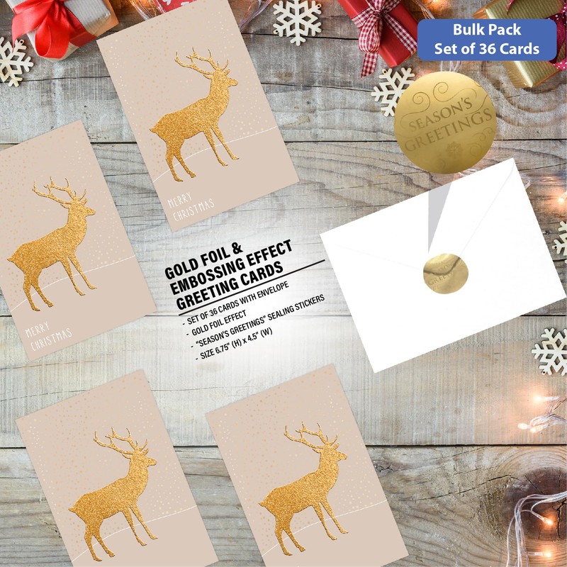 - Elegantly Embossed Designs: Celebrate the festive spirit with our 36 PCs Gold Foil & Embossed Christmas Cards. Each design captures the essence of Christmas and the Holidays, featuring unique messages that radiate warmth and joy. Discover the magic within each design by exploring our product photos.
