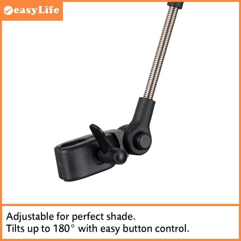 - EASILY ADJUSTABLE AND ATTACHABLE - as well as an easy-to-use button to adjust the position up to 180°, and an auto-release button, this sun umbrella features a universal clamp that allows you to firmly attach it to chairs, loungers tables and more