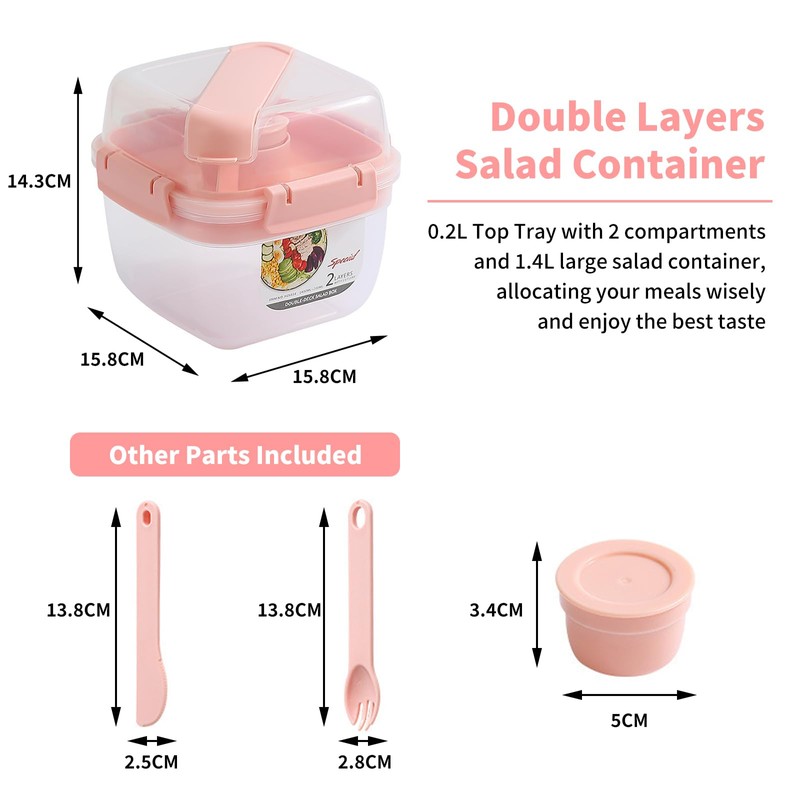- Nutritious Balance: Our double-layer salad lunch box consists of a 1.4L salad container and a 2-divider removable compartment, plus a lidded salad dressing container—perfect for a well-rounded meal on the go