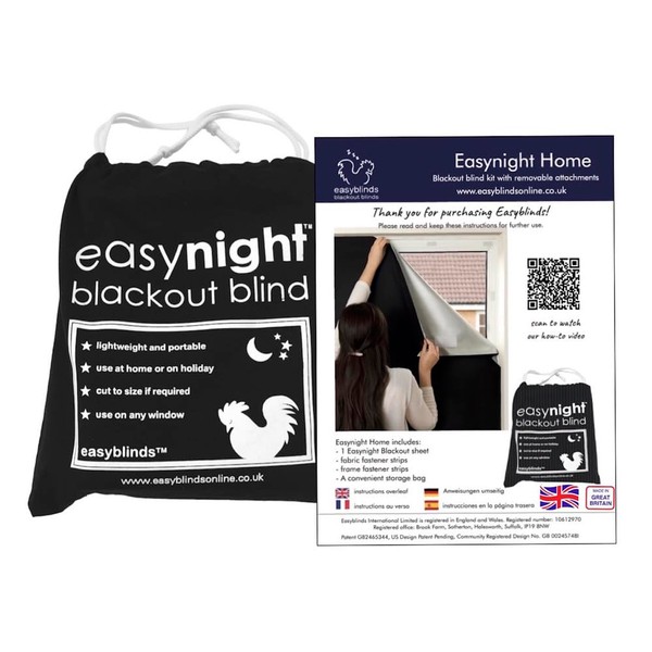 Easynight Blackout Blind, 100% Light Blocking Fabric, Small, Fit Any Size/Shape Up To 100x145cm, Made to Measure Service Available, No Drill, Easy Use Temporary Permanent Anywhere