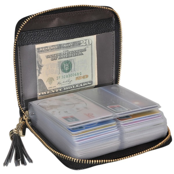 Easyoulife Womens Credit Card Holder Wallet Zip Leather Card Case RFID Blocking (Black)